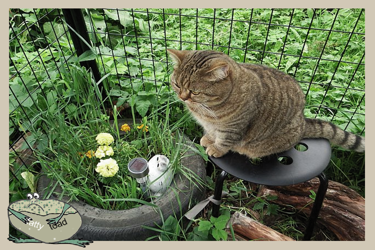 В хорошую погоду кошка там проводит по несколько часов подряд, спит ест, лоток тоже имеет. И телевизор в 4 экрана. На первом канале передают, как люди ходят на водопой, то есть к источнику воды, по второму демонстрируют соседей, третий - для релаксации, там передача про сад и птичек, а четвертый - о вечной движухе. Наверное, как для людей спортивный. В кадре стол, лавка, входная дверь, основная тропинка, там постоянно кто-то суетится! Скучать не приходится. По третьему каналу еще огородные забавы передают раз от разу, тоже занимательно. Носы вниз, попы вверх, копаются.