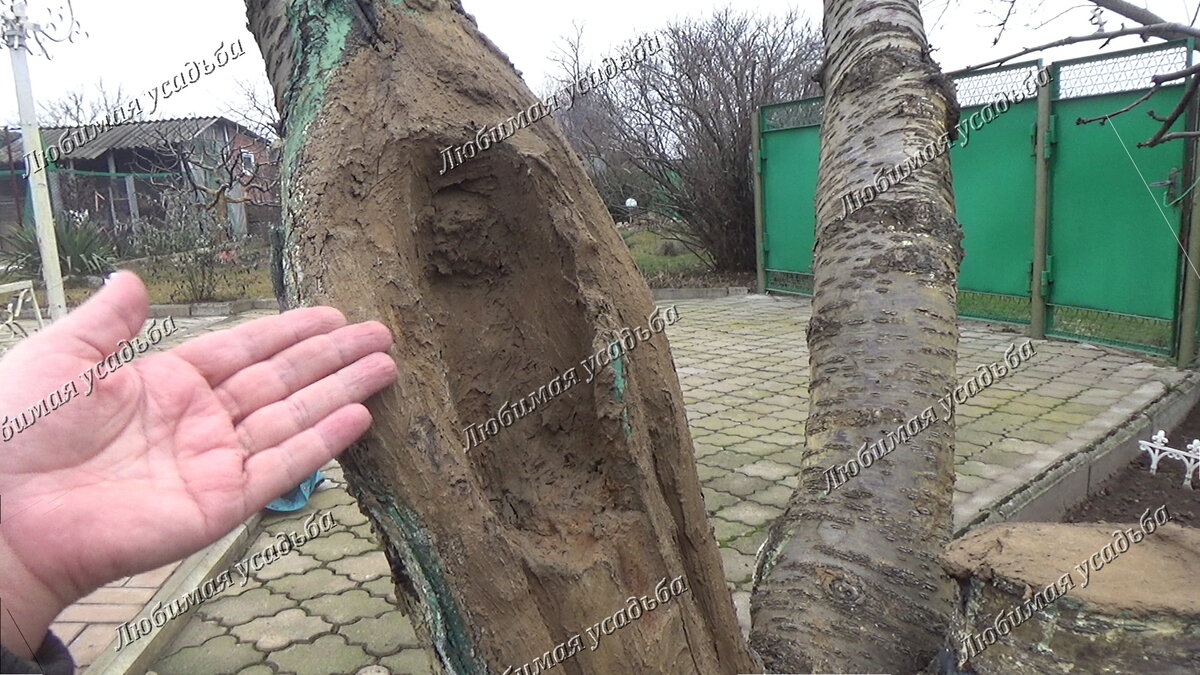 Здравствуйте. С вами Светлана и канал ЛЮБИМАЯ УСАДЬБА Раны на плодовых деревьях могут появляться по многим причинам. И по природным и в связи с ошибками в обрезке сада . В любом случае их необходимо вовремя залечивать. Но иногда бывают такие случаи, когда рана на дереве очень глубокая и ее невозможно закрыть никакими материалами. Пример такой раны вы можете видеть на этом фото. Однажды , несколько лет назад, во время сильнейшего бурелома на черешне в этом месте произошел слом толстой ветки . Она отломилась с задиром коры на 25-30см. Место повреждения было зачищено, закрашено. Дерево начало залечивать рану самостоятельно, делая наплывы с обеих сторон. Однако внутри раны поселились муравьи древоточцы и начали разрушать древесину изнутри, оставаясь незамеченными. А в этом году, при очередном осмотре раны, решив подчистить ее края для более скорого заплыва этой раны, я обнаружила, что внутри, под краской древесина вся трухлявая. Вот такое дупло я вычистила, прежде