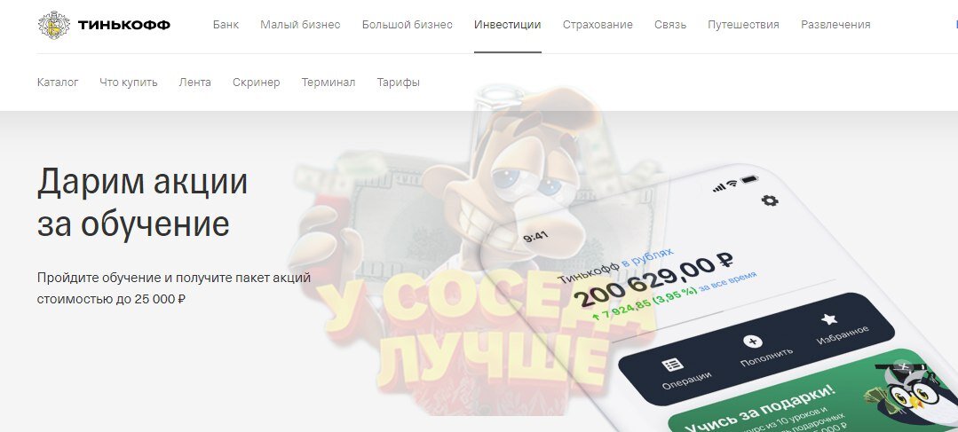 Привет всем! У меня для вас есть ОЧЕНЬ хорошая новость. Акцию с Тинькофф инвестициями продлили до 1 июня, а это значит, что мы с вами сможем продолжить фиксировать по 2-25 тысяч чистой прибыли с одного аккаунта. Многие заметили, что Тинькофф немного усложнили целевое действие для продажи подарочных акций, но я для вас уже нашел обход, так что читайте обязательно данную статью до конца и фиксируйте прибыль Суть схемы: Официальные условия можете узнать в этом документе. Ну а если нет желания вникать в документ, читайте дальше, я разложу всё по полочкам !В чем суть схемы: вы открываете брокерский счет в Тинькофф, затем проходите "мини-обучение", в котором за каждый пройденный урок вам будет подарена рандомная акция стоимостью до 16000 рублей. Получаем бесплатные акции Для начала оформляем брокерский счет по 👉 ссылка https://www.tinkoff.ru/sl/3YZpfIpbesH И ждем смс об открытии счета. Для открытия брокерского счета и получения подарочных акций требуется карта Тинькофф банка. Также, к
