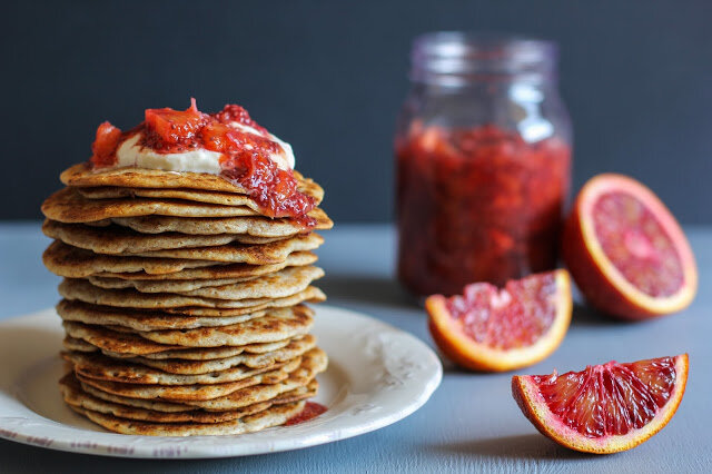 Здесь собраны целых 18 рецептов блинов оладьев и драников. Все они - мои любимые. Каким-то уже много лет, а какие-то появились недавно. Но главное, все они - мои любимые, и что важно - очень вкусные. Уже завтра начало масленичной недели, что делает это пост особенно актуальным. Поэтому, удачных и приятных вам кулинарных экспериментов! 1 Кокосовые блинчики с чиа-джемом из красных апельсинов и цитрусовым кремом из рикотты 2 Оладьи из чечевицы и овощей 3 Десертные блины с карамельным соусом 4 Немецкий суп с блинами 5 Оладьи из хурмы с шоколадной глазурью 6 Кукурузные оладьи 7 Картофельные оладьи с беконом и вялеными томатами 8 Творожно-яблочные оладьи с корицей 9 Картофельные драники с лососем и сливочным сыром 10 Ржаные блины с грудинкой, кориандром и томатами черри 11 Оладьи с запеченными болгарскими перцами и сыром фета 12 Томатные и шпинатные блинчики 13 Блинчики с мясом 14 Несладкие оладьи с зеленью 15 Кабачковые оладьи 16 Сырные блины с зеленью 17 Блины со сливочной курино-грибной