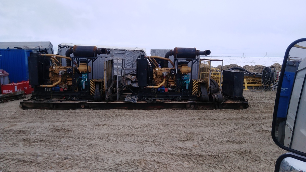 Компрессорная установка, силовой двигатель фирмы катерпиллер, выдаёт давление мощностью более 300 атмосфер.применяется при бурении скважин глубиной от1, 5 до 3 км. Её масса составляет около 16 тонн. Этот компрессор я сфотографировал на быстринском месторождении, а информацию про данную установку мне рассказал монтажник, который работает в Белоусь Нефть. Также он сказал, что компрессоры во сновном все импортные, это американский но произведён в Китае, как и передвижная буровая установка.