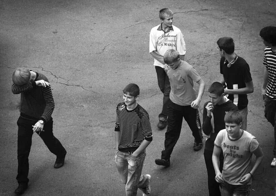 Во дворах, в торговых центрах, на остановках они рисуются, хохочут, презрительно оглядывают окружающих, норовят задеть. Всё задиристо отрицают бравадой нарочитой глупости. Почему это происходит? Нечем заняться? Ими недовольны педагоги и родители? Не хватает воли, чтобы выдумать тему для тихой беседы, скромное и созидательное занятие, игру, которая требует умственных усилий? Нет реальных успехов, а триумфа хочется здесь и сейчас. Вызов обществу — опасная игра Вот компания разгуливает по району. Ребятам не больше восемнадцати. Пёстро одетые, некоторые нарочито неряшливы. Зычно выкрикивают всё, что приходит на ум. Бранные каламбуры, издевательские шутки. Если встречается горка или вышка, кто-то взбирается, чтобы ужимками посмешить остальных. Экспрессии больше, чем реального остроумия. Они чувствительны к жизни. В мире надо бороться. Битвы привлекательнее труда. А пока схватки нет, идёт бравада боевого ритуала. Вот строительный помост, можно его пошатать. Отлично. Вон идёт задумчивый тип н