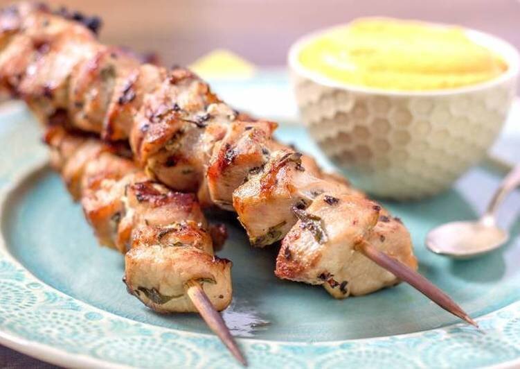 Ингредиенты ¼ стакана лимонного сока ¼ стакана масла вок ⅛ стакана красного винного уксуса 1 столовая ложка луковых хлопьев 1 столовая ложка измельченного чеснока 1 лимон без цедры 1 чайная ложка греческой приправы 1 чайная ложка приправы для птицы 1 чайная ложка сушеного орегано 1 чайная ложка молотого черного перца ½ чайной ложки сушеного тимьяна 3 куриные грудки без кожи и костей или, если необходимо, нарезанные на кусочки по 2,5 см 8 бамбуковых шпажек или, при необходимости, замочить в воде на 30 минут Шаг 1 Взбейте в миске лимонный сок, масло, уксус, луковые хлопья, чеснок, цедру лимона, греческую приправу, приправу для птицы, орегано, перец и тимьян и перелейте в закрывающийся пластиковый пакет. Шаг 2 Добавьте курицу, обмажьте маринадом, выдавите лишний воздух и закройте пакет. Мариновать в холодильнике не менее 2 часов. Шаг 3 Разогрейте духовку до 175 градусов Цельсия. Шаг 4 Вынуть курицу из маринада и стряхнуть лишнее; нанизать на шпажки. Выбросьте оставшийся м