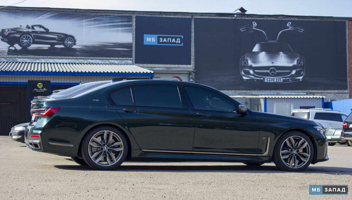 Доброго времени суток нашим читателям! В сегодняшней статье речь пойдет про дооснащение новой BMW M760Li карбоно-керамической тормозной системой от BMW M5 F90 Автомобиль приехал новым с минимальным пробегом и поэтому первом делом для защиты его лакокрасочного покрытия в дальнейшей эксплуатации оклеили все подвергающиеся опасности место защитной полиуретановой пленкой. Далее уже к приступили к тюнингу тормозной системы. На данную семерку наши мастера установили комплект карбоно-керамической тормозной системы от BMW M5 в кузове F90. Передняя ось обзавелась новыми тормозными дисками размером 400х38 и 6-ти поршневыми суппортами Brembo А на заднюю ось установили диски размером 380х28 с однопоршневыми суппортами. Из плюсов установки карбоно-керамических тормозов можно выделить ее износостойкость, массу, а так же отсутствие перегрева у данной тормозной системы. Напоследок в данном автомобиле меню щитка приборов был закодирован под спорт и снят ограничитель скорости. Вы всегда можете получить