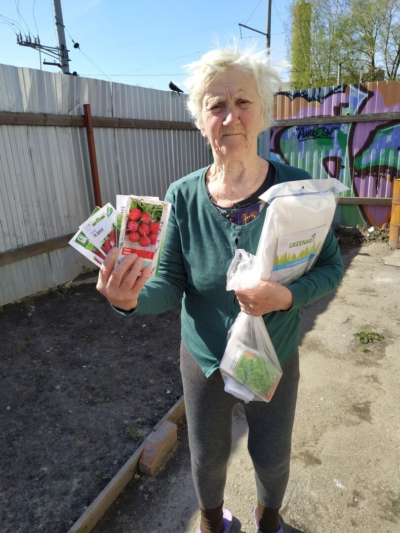 Благодаря отзывчивым петербуржцам (таким как Анна Комиссарова) у Натальи Михайловны (Н.М.) теперь достаточно всяких РАЗНЫХ СЕМЯН. И редис, и укроп, и салат и т.д. и т.п.