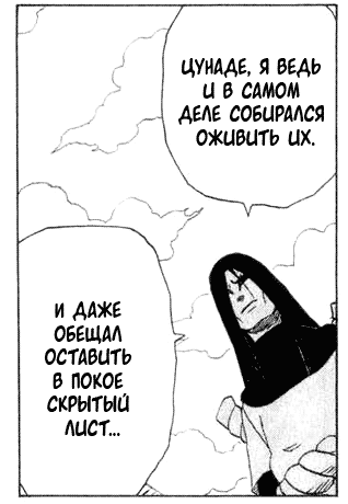 Как мы все поняли - Цунаде собиралась убить Орочимару. Узнав это, Орочи расстроился, сказав, что он взаправду собирался оживить тех двоих и ПООБЕЩАЛ не трогать Лист..