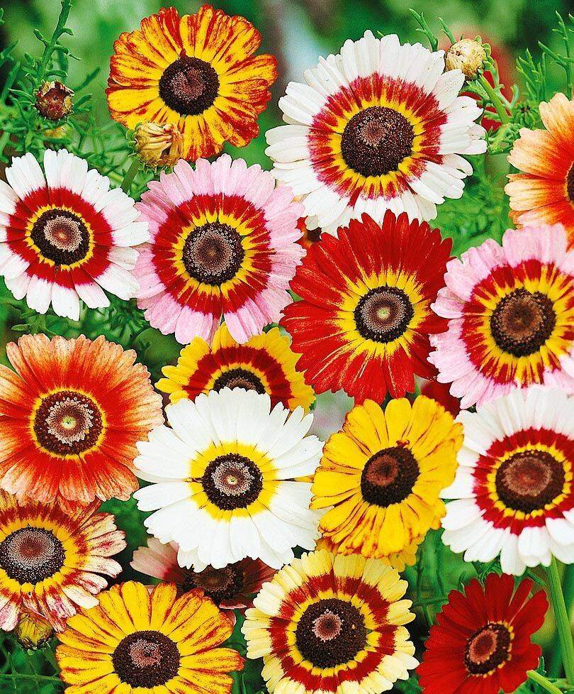 Как-то задалась я темой садоводства, очень захотелось посадить цветы на участке родителей, но знаний ноль, а желания море. Поэтому я искала цветы, которые будут неприхотливы, не слишком требовательны к температуре, не любящие слишком много влаги, не каждый ведь день получается ездить на дачу и поливать. Фото, к сожалению не осталось, но в этом году я снова их посажу и надеюсь участок запестрит буйными красками. Поэтому для поста фотографии буду брать из интернета. Я не беру такие цветы, как маргаритка, календула, бархатцы, петунья. Поскольку для меня они привычны, видела практически на каждом участке в саду. Хотелось попробовать что-то новое и наверное не совсем избитое. Мой перечень таков: 1. Хризантема килеватая. Сорт устойчив к неблагоприятным условиям и вредителям. Предпочитает солнечные участки. 2. Василек "Фрости Микс". Легок в выращивании. Высевают сразу на постоянное место в открытый грунт. Холодостоек. 3. Космея ПИКОТИ. Высевают в открытый грунт. Цветет до заморозков. Относит