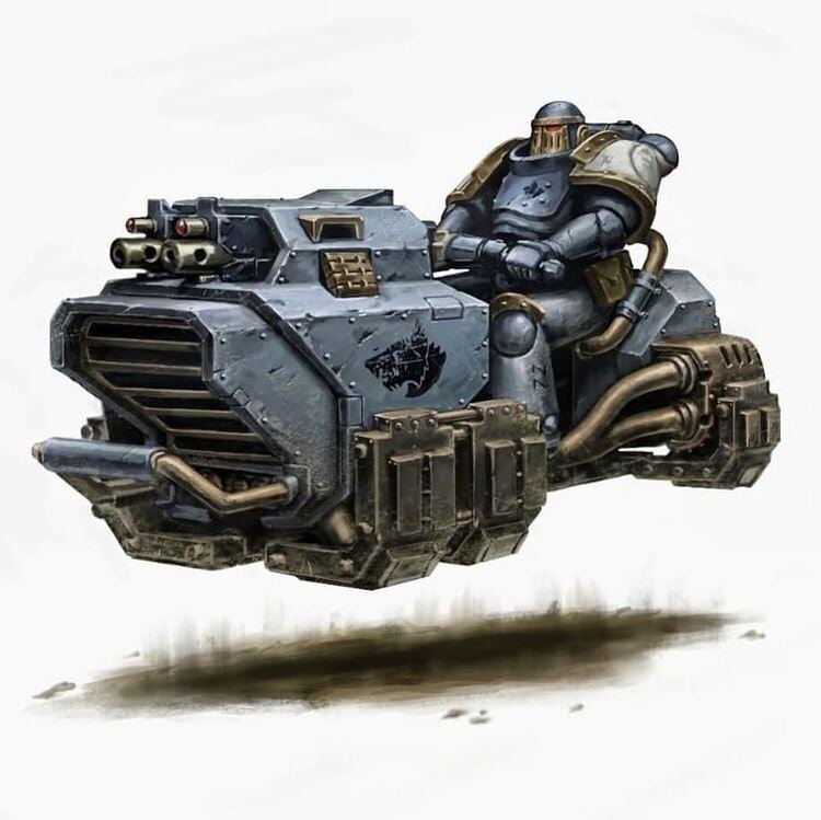 Джетбайк - это быстрая и маневренная боевая машина, оснащенная реликтовой антигравитационной технологией, которая позволяет ему парить над любой поверхностью, приводя его в движение мощными реактивными двигателями. Эти изящные машины могут использоваться для переброски астартес по воздуху над водоворотом битвы или для внезапных атак с последующим отступлением. На протяжении столетий Империум Человечества использовал несколько различных моделей Джетбайков, также именуемых гравициклами. Наиболее распространенные модели обычно имеют комплект вооружения для уничтожения вражеской техники и бронированной пехоты, который включает плазменную пушку и спаренные болтеры. Наведение оружия осуществляется поворотом всего корпуса, при этом джетбайк способен зависать в воздухе для лучшего прицеливания. В конце 41-го тысячелетия эта архаическая технология практически исчезла в Империуме, но боевые гравициклы по-прежнему широко используются Адептус Кустодес. статья: Гравицикл Кустодианской Гвардии «