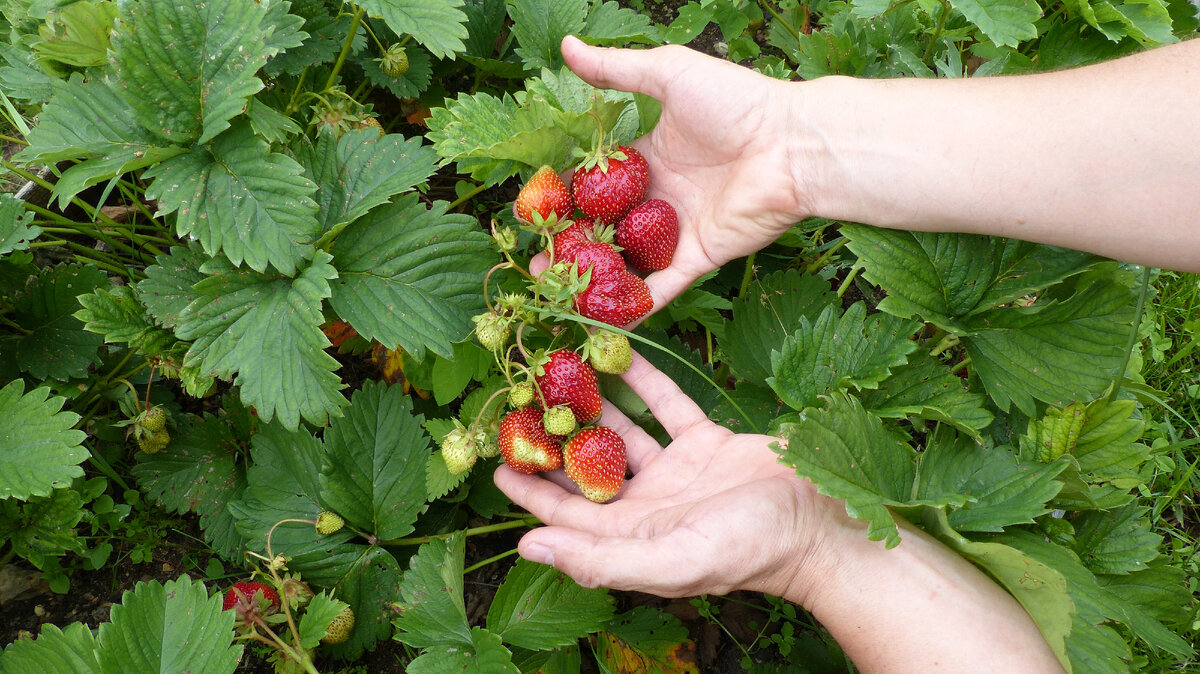Добрый день, дорогие читатели! Сегодня я хочу рассказать и показать, как я выращиваю клубнику у себя на даче. Клубника - это то, ради чего в основном и задумывалась дача - очень мне нравится эта ягодка. Именно поэтому, большая часть грядок занята именно ей. Вот такие у меня грядки. Как и все остальное, клубнику я сажаю на грядках с деревянным обрамлением - все остальное пространство на даче засажено газоном. Мне так показалось удобным, за участком ухаживать достаточно легко - газон просто скашивается с помощью триммера. Грядки я делаю метровой ширины, можно даже немного поменьше, ягоды сажаю в два ряда на расстоянии примерно 25 сантиметров друг от друга. Кустики разрастаются, занимают собой все пространство, не оставляя места сорнякам. Нет, они растут конечно, но не так сильно, как на открытом участке. Изначально, когда только купили дачу, я пару лет пробовала сажать клубнику на обычных грядках с использованием черного спанбонда - расстилала его на грядке, делала разрезы в нем и са