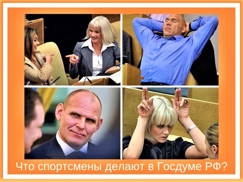 Ни для кого не секрет, что все эти персонажи приходят в Думу с одной единственной целью - в поисках теплого места. В здании номер один Охотного ряда трудятся многие известные в стране люди - спортсмены чемпионы, певцы и актеры, и даже многие генералы. Что скажешь, очень теплое место - Государственная Дума Российской Федерации. И сколько же плюсов от работы в Госдуме! Свободное посещение своего рабочего места, приличная зарплата, полное государственное обеспечение, возможность раннего выхода на пенсию. Вообщем благодать! Не жизнь - а сказка! Недавно в СМИ появилась информация, что «Единая Россия» отказывается от выдвижения в Госдуму артистов, спортсменов и музыкантов. Партия власти будет опираться на людей с «профессиональными компетенциями», которые могут принести «практическую пользу». Боксёр и депутат Николай Валуев уже заявил, что намерен бороться за мандат в третий раз в 2021 г. «Госдума, имея профильный Комитет по спорту, будет набирать туда кого?» – задался вопросом он. Наве
