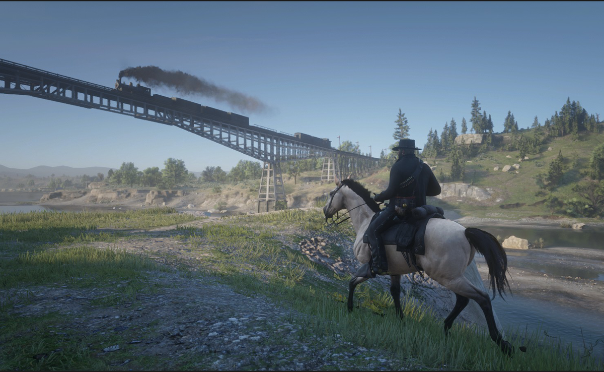 Red Dead Redemption II - мир, в котором можно «залипнуть» надолго, позабыв о сюжете. ... Америка конца 19-го века. Расцвет Промышленной эры, время электричества и пара. Племена индейцев согнаны со своих исконных земель в резервации; те, кто сопротивлялся – почти полностью истреблены. Давно закончилась Гражданская война; о ней напоминают лишь заросшие травой окопы на полях сражений и рассказы ветеранов. На смену пионерам — первопроходцам и охотникам пришли земледельцы, скотоводы и промышленники. Вырубаются леса, прокладываются железные дороги, ведётся добыча полезных ископаемых. По рельсам мчат поезда, арки мостов соединяют берега рек. В городе круглосуточно кипит жизнь: дымят фабрики и заводы, электрические фонари освещают улицы, с мелодичным трезвоном проезжают трамваи. По мощённым камнем тротуарам гуляют красиво одетые люди; работают магазины, салуны и даже... синематограф! В маленьких городках на главных улицах лужи и грязь, но технический прогресс пришёл и сюда: есть магазинчики, а