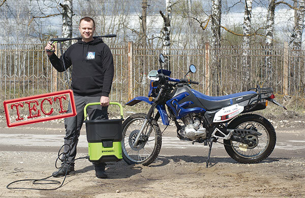 Аппарат справляется вполне достойно, если не торопиться и последовательно проделать стандартный цикл — предварительно сбить крупную грязь, нанести шампунь и всё смыть. Мощность струи невысока, и подносить сопло пистолета можно (и нужно!) достаточно близко. Повредить им что-то в мото- или автотехнике невозможно. Впрочем, грязный автомобиль — задача всё же не для Greenworks GDC60. Мойка очистит застоявшуюся машину от пыли, собьёт свежую снежную кашу в оттепель, но настоящая подсохшая грязь мощности в 70 бар всё же не по зубам — это задача для другого оборудования. А вот взять её с собой на внедорожные «покатушки» — самое милое дело! Свежие кляксы земли и глины любой толщины мойка сбивает отлично, и ею очень удобно провести предварительную очистку квадрацикла, пит-байка или автомобиля, пока он не «окаменел». Это полезно как с технической точки зрения, так и в плане безопасности — выезжать из полей на шоссе нужно с чистыми стёклами, зеркалами и номерными знаками, как минимум.