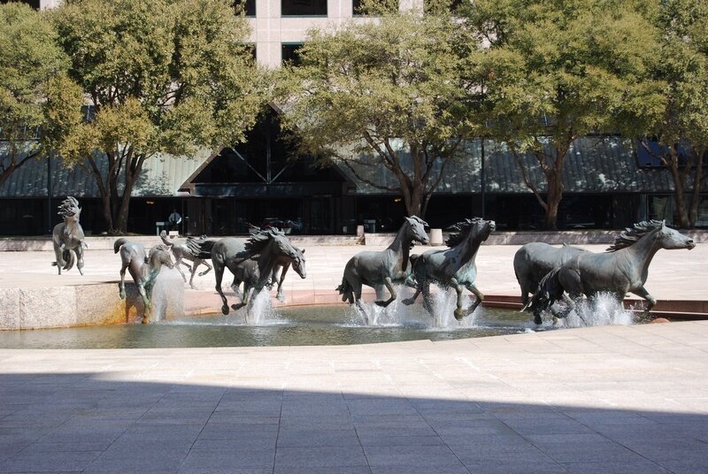 Сегодня я решила рассказать вам о пяти необычных скульптурах мира, которые, заинтересуют каждого. Думаю, после того, как вы подробней узнаете об этих замечательных работах, затем захотите взглянуть на них вживую. Мустанги Лас-Колинаса Автором этой необычной работы является Роберт Глен. Эта скульптура находится в США в штате Техас. Она воздвигнута в память о диких мустангах, когда-то проживавших на этой территории. В скульптуру входят 9 статуй. Их величина в полтора раза превышает фактический размер лошадей, и неспроста. Так как статуи находятся среди огромных высотных зданий, то на их фоне они теряются и уже не выглядят такими гигантскими, поэтому лошади начинают казаться в натуральную величину. Лошади изображены бегущими по воде, от их ног летят брызги из специально настроенных фонтанов. Идея же скульптуры содержится в передаче атмосферы дикого Техаса. Путешественники Автором этих замечательных скульптур "Путешественники" является Бруно Каталано. Его работы расставлены по фра