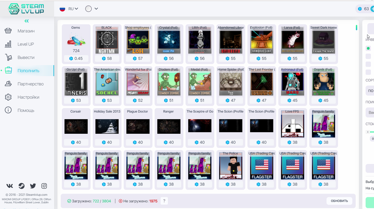 Вы передаете ему ваши карточки, вам начисляются гемы, которые затем можно либо обменивать на другие сеты карточек, либо заказывать TF2 ключи или стим гемы. Переходим в раздел пополнить, выбираем нужный товар, (стим карточки) , вам прих