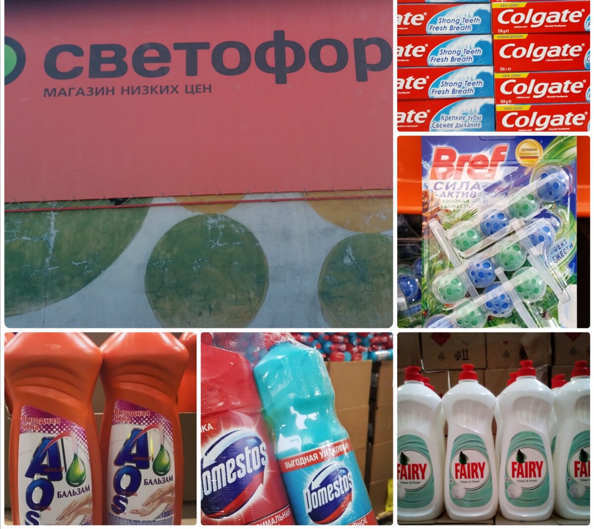 Здравствуйте, уважаемые читатели! Спасибо, что зашли на мой канал. В Светофоре в последнее время появилось довольно много товаров известных брендов. Сегодня в своей статье я хочу рассказать вам об этих товарах и сравнить их стоимость со стоимостью в других магазинах. Универсальное средство Доместос Выходит 1 л стоит 80 рублей. В таких магазинах, как Магнит и Пятёрочка, минимальная цена на Доместос объёмом 750 мл - 99 рублей. В Фикс Прайс также цена выше. Бутылка объёмом 450/500 мл стоит 55 рублей. Блок для унитаза Бреф В Ленте сейчас такой блок из 3-х штук стоит по акции 189 рублей. Обычно же цена в магазинах, в том числе и в Фикс Прайс, 90-99 рублей за 1 шт (50 г). Средство для мытья посуды АОС В таких магазинах как Лента, Магнит цена за 900 г такого средства 99 рублей. В Фикс Прайс 900 мл стоят также 99 рублей. Средство для мытья посуды Фэйри В других магазинах я не встречала данное средство в точно такой же бутылке, но по-моему оно везде одинаковое. В Магните бутылка Фэйри о
