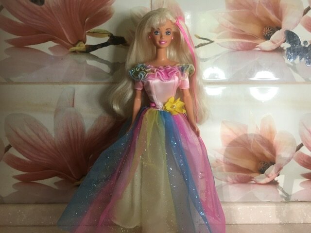 Другие обзоры Барби Супер Стар Барби Снежинка Барби Secret Hearts Барби "Стиль Голливуд" Барби Happy Holidays 1995 Barbie Twinkle Lights Barbie Spring tea party Барби Dance Magic Еще один нежный бутончик в моей коллекции. К ней в наборе шли картонные подарки и вкусности. Платье двухслойное Макияж нежный, глаза двухцветные (голубой и зеленый) Волосы мягкие, пушистые, большая копна Тело 1966 года Платье очень хорошо сделано, с корсетом, лентами, все переливается. Фирменная бирка. А у Вас какие есть нежные куклы? Поделитесь в комментариях, прошу вас