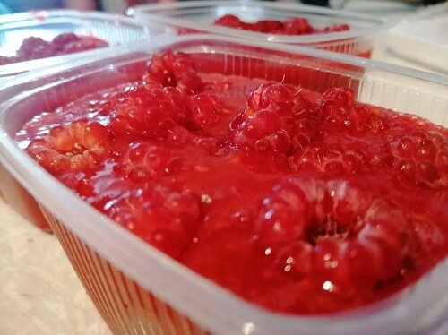 Ягоды малины - попробую залить клубничной смесью, а клубники - малиновой.