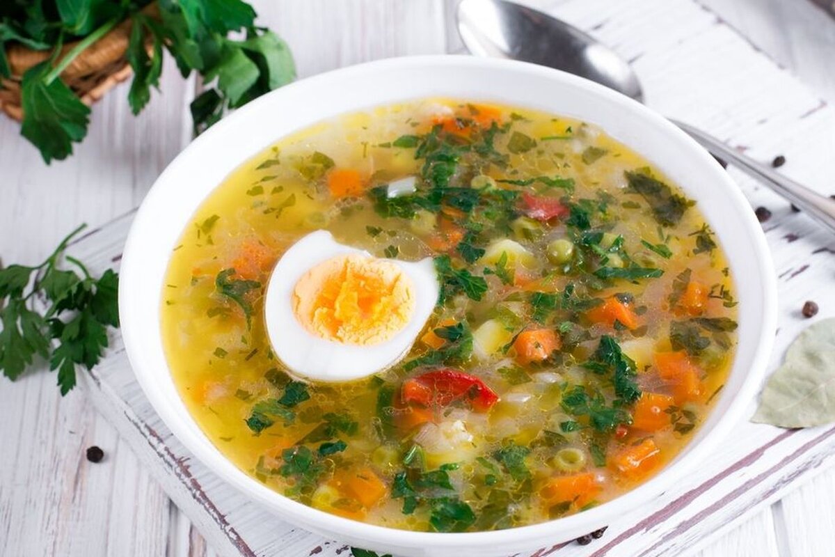 1. Легкий рисовый суп с яйцом