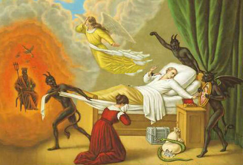- Послушайте, братия, - сказал он, - повествование, которое рассказали мне некоторые египетские отцы об одном брате, которого все считали святым, но сердцем прогневлял Бога, увлекаясь нечестивыми помыслами и любодействуя умом. Когда он приблизился к кончине, пришел туда некий прозорливый старец и услышал о нем, что он болен при смерти, и нашел всех жителей плачущими и говорящими: "если скончается сей святой, то нам уже нет надежды на спасение, потому что все мы спасаемся его молитвами". Услышав это, прозорливый старец с поспешностью пошел к больному, желая получить благословение от этого мнимого святого, и, приблизившись к жилищу его, увидел множество народа со свечами, иереев и диаконов, ожидающих епископа к торжественному погребению того святого. Войдя в горницу, старец застал его еще дышащим и, воззрев душевными очами, увидел беса, держащего трезубец; пронзив им сердце умирающего, бес со многими муками извлекал душу его. При этом святой услышал голос с неба, глаголющий: "как не упокоила меня душа его ни один день, так и ты непрестанно мучь его и исторгай из него его душу". Итак, тот брат скончался в муках, ибо сверху он казался святым, внутри же сердца прогневлял Бога". "Внимая сему, братия, - продолжал преподобный Евфимий, - тщательно оберегайтесь от помыслов, оскверняющих душу: ибо во время разлучения души с телом воспримут одинаковое мучение мечтающие о блуде, как и творящие грех тот. Но помолимся о брате сем Емилиане Богу, наказующему его, но не предающему смерти, да освободить его от беса и плотских страстей.