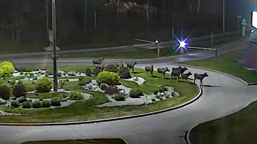 Пока жители Перми мирно спали, в ночь с 22 на 23 мая по городским улицам прогулялось стадо лосей. Очевидцы насчитали в рогатой группе двенадцать особей. Прогулку диких животных зафиксировали камеры наружного видеонаблюдения торгового центра СпешиLove. Видео этого необычного явления на своем канале выложил Dmitriy Mudarisov. Благо, в это столь позднее для прогулок время кольцевая развязка у торгового центра была абсолютно пустая. И стадо с королевским спокойствием продефилировало через нее, попутно пощипав травку на местном газоне. Приблизившись к дороге, на которой еще довольно активно ездили машины, лоси ненадолго остановились и призадумались. После чего решили изменить свой маневр и всею резвою толпой ринулись обратно в лес. Кстати, пермякам напоминают, что сейчас идет сезон миграции лосей, и животные могут появляться вблизи автомобильных дорог. Водителям нужно помнить об осторожности, чтобы избежать столкновения с крупными рогатыми животными.