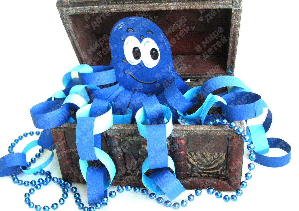 Получаем в итоге милого бумажного осьминога, очень интересного и симпатичного на вид. Наша готовая поделка позабавит любого малыша, ведь она такая оригинальная!