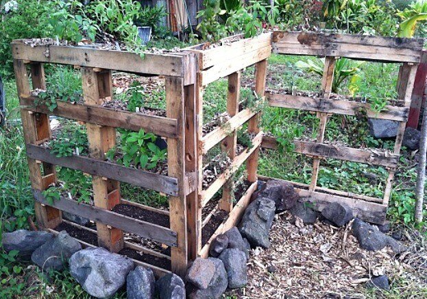 1. Ширма-изгородь из поддонов с зеленью и пряными травами Живые изгороди не теряют своей актуальности. И вот еще один вариант комбинированной изгороди из поддонов. Образующиеся пустоты засыпают грунтом и высаживают зеленные, пряно-вкусовые травы и цветы, которые хорошо подходят для вертикальных грядок. По мере роста растения закроют окошки в конструкции и ширма будет завершена. 2. Оригинальные горшочки для рассады. Половинки цитрусовых можно использовать в качестве горшочков для рассады. Сделайте отверстие в нижней части кожуры для дренажа, заполнить почвой, посейте семена. Прелесть такого «горшка» в том, что рассаду высаживают прямо в кожуре. Кожура будет разлагаться в почве и питать молодое растение. 3. Столик из пня Добавьте фантазии и превратите невзрачный пенек в изящный столик для чаепитий. Для этого просто накройте пенек деревянной или стеклянной столешницей. А пень, растущий посреди сада, украсьте цветами — и никто не заметит его в гуще дачной оранжереи. 4. Новая жизнь старых г