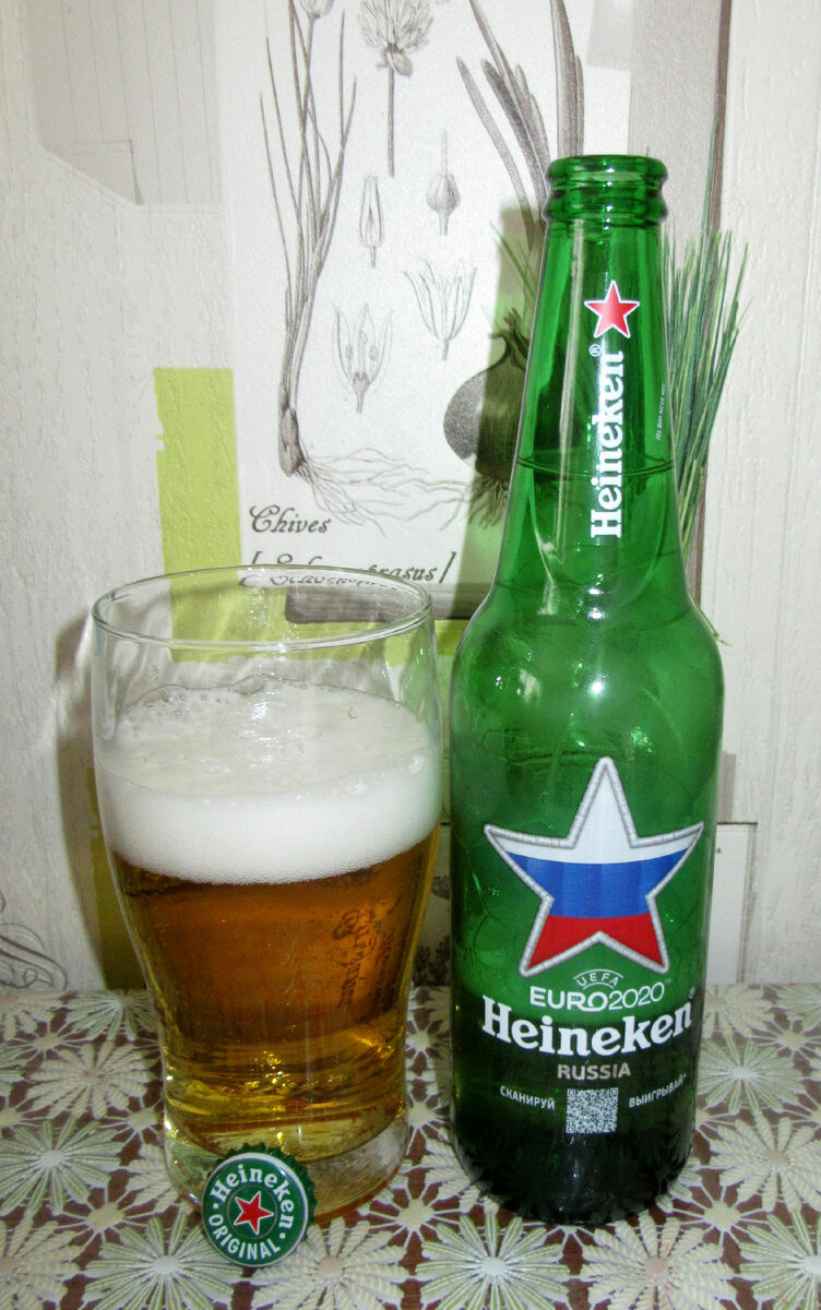 Как известно, в скором времени нас ждет чемпионат Европы по футболу-2020. Да, такой вот парадокс - Евро-2020 пройдет в 2021 году. Как известно, чемпионат должен был пройти в 12 городах 11 стран (Англия и Шотландия, как известно, входят в Соединенное Королевство). Сейчас эти вводные немного подкорректировали. Компания "Heineken" выпустила одноименное пиво с этикетками в честь стран-хозяек будущего Евро. Интересно, а в других странах, где разливают "Heineken", тоже вышли аналогичные выпуски? Причем это было сделано аж в двух вариантах - 0.47 и 0.33. Чем не повод перепробовать пиво знаменитого бренда, тем более я его пил последний раз достаточно давно - не менее трех лет назад (А может и больше). Heineken. ТТХ-11.2-4.8. Производитель филиал "Волга" ООО "ОПХ". Нижний Новгород. Хоть я не очень люблю подобные прозрачные этикетки, в этой серии есть своеобразный шарм. Вместо широко известной красной звезды звезды в цветах национальных флагов. Так и хочется в фотошопе вставить стандартную красн