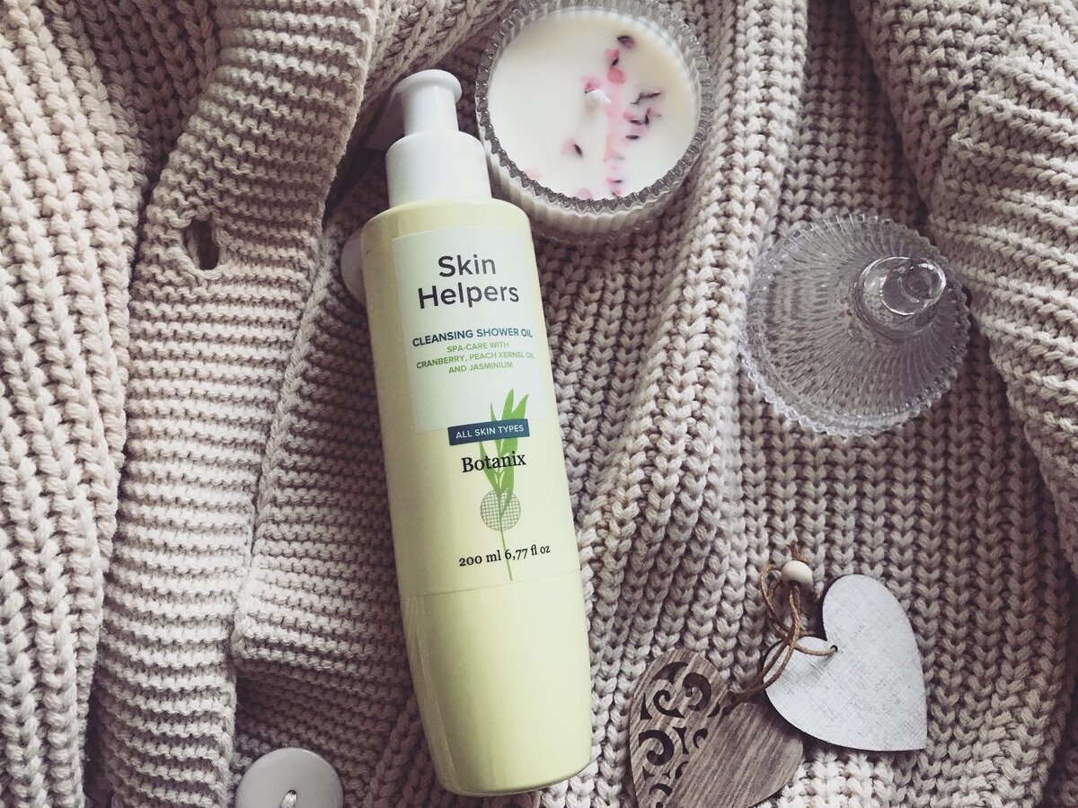 Я люблю принимать душ и у меня много средств для душа, но так как у меня кожа проблематичная, очень сохнет, шелушится, мне приходится отказываться от многих продуктов, так называемые «синтетические» и делаю выбор в пользу масляных текстур! Одна из моих новинок, которые я очень ждала, это Skin Helpers Очищающее масло для душа «Botanix» спа-уход с абрикосовой косточкой и жасмином - очень красивый и стильный флакон с помпой, маслянистой консистенции желтого оттенка и тонким, приятным ароматом трав, но со сладостью - продукт можно наносить сразу на тело или взбить небольшую пенку с помощью губки или мочалки, я использую и такой и такой вариант - если использовать просто, нанеся на влажное тело, масло покарается в молочко, если с помощью губки, тоже превращается в молочко, но даёт уже неплохую пену - не сушит кожу, а наоборот, увлажняет и питает, после можно не использовать дополнительно лосьон или крем для тела - расход небольшой, порой масляные текстуры требуют на раз большого количест