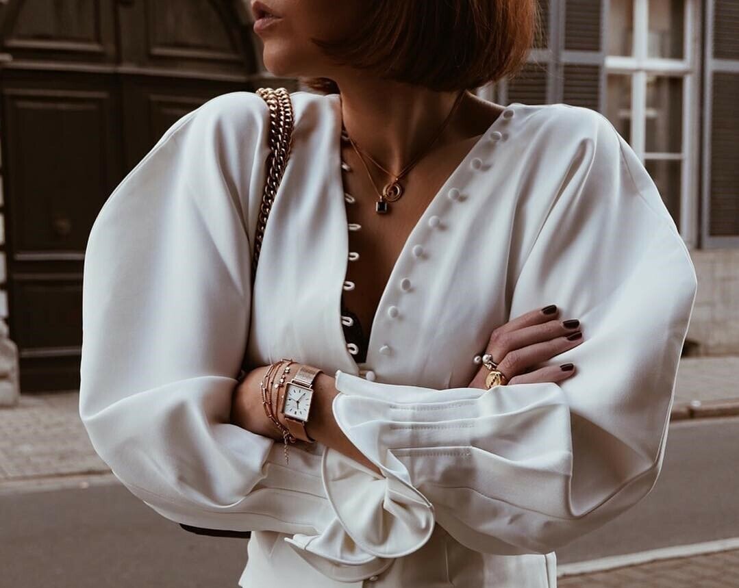 В тренде маст хэв 2021 года весны и лета объемные рукава вписываются как в виде гротескного преувеличения, так и в нежно-романтическом целостном восприятии.