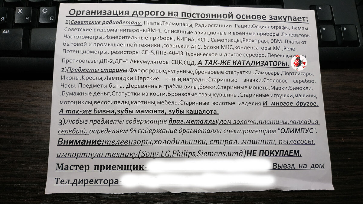 Недавно в почтовом ящике обнаружила довольно интересное объявление: «Организация дорого на постоянной основе закупает: …. » и далее целый список вещей, которые эта организация желает приобрести у населения. Список, конечно, впечатляет, чего там только нет. Порадовало то, что эти все предметы хоть не назвали обидными словами «хлам», «старьё» или «барахло». Ведь, на самом деле, если вчитаться, то губа у этой организации не ... (ну, продолжение вы знаете). Но я же тетя в теме, так сказать. Хоть немного, но цены знаю и среди всех этих предметов старины постоянно гуляю. Поэтому уверения, что организация эта покупает дорого – лично у меня вызвало только усмешку. Знаем мы это "дорого" – за 3 копейки купить, облапошив пенсионеров и тех, кто верит на слово, чтобы потом перепродать коллекционерам за миллионы и жить припеваючи. Собственно говоря, далеко в своих предположениях я и не ушла. Поискала информацию про эту организацию и была весьма впечатлена, что находится она за 250 км от нашего горо