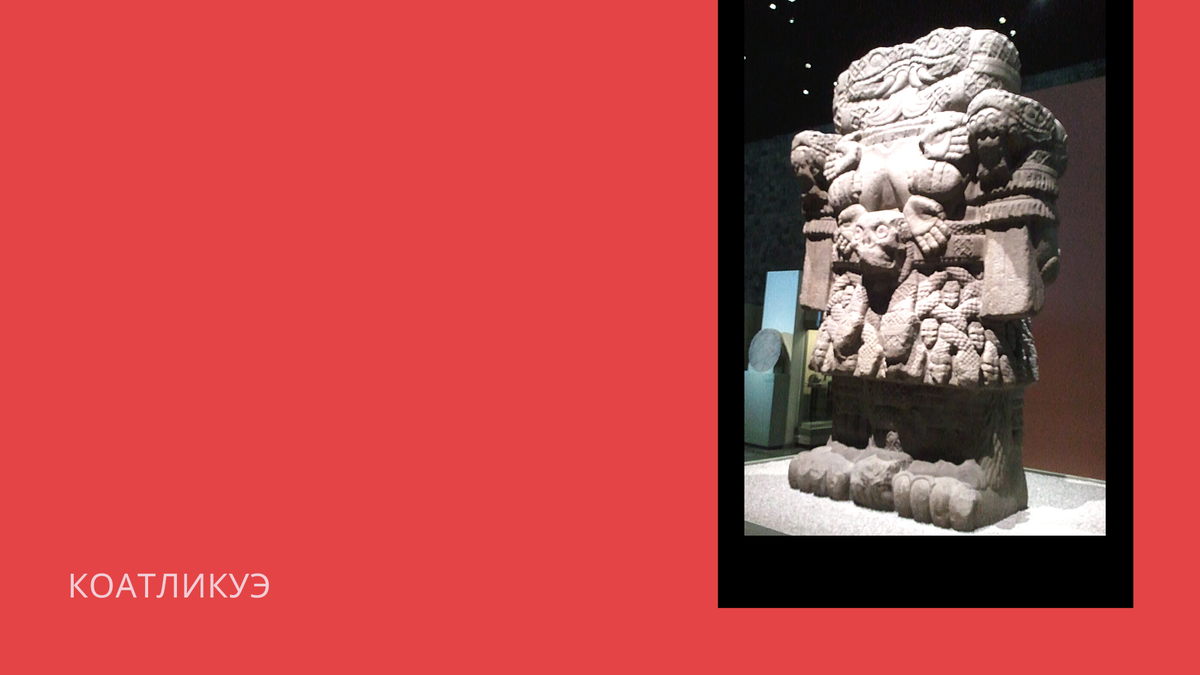 Добрый день! В этой публикации я продолжаю цикл о культуре индейцев Америки. Речь идет об ацтеках и я уже успела рассказать о том, как они шли в Мексику 260 лет и о роковой ошибке, связанной с богом Кетцалькоатлем, которая привела к падению государства. Теперь самое время поговорить и о других богах. Так, матерью верховного божества Уитцилопочтли считалась богиня Коатликуэ, чье имя переводится как “ее платье из змей” – богиня земли, смерти и растительности. По легенде, она была вдовой прежнего солнца и жила с 400 сыновьями Сенцон Уицнауа - богами южных звезд и дочерью Койольшауки - богиней Луны. Однажды ее угораздило найти комок перьев колибри, который она то ли проглотила, то ли спрятала за пояс и, в результате этого, забеременела. Дети были в ярости и хотели убить мать. Но из ее живота выскочил младенец Уитцилопочтли и всех победил. Убитые братья превратились в звезды. Сестре же он отрубил голову и закинул на небо, где она стала луной. Сердце разорвал, а тело сбросил с горы. Этот со