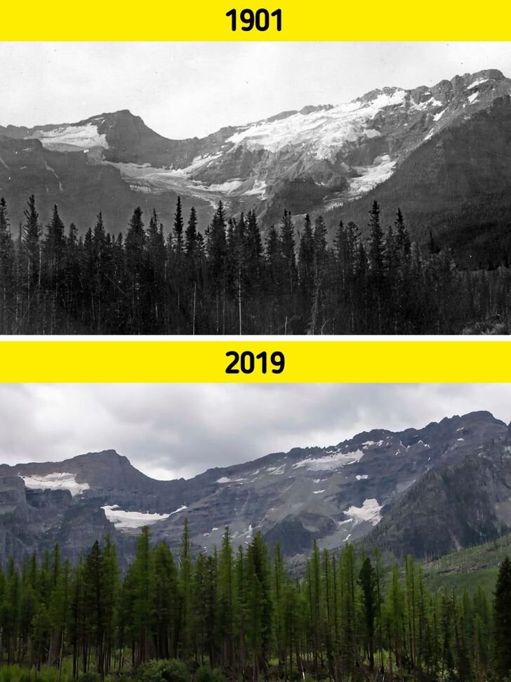 2020 год стал 3-м самым жарким годом на планете за всю историю наблюдений, и это является напоминанием о том, что изменение климата идет прежним курсом. «Примирение с природой — определяющая задача XXI века», — сказал генеральный секретарь ООН. Мир меняется, и мы должны осознавать, что можем потерять или приобрести, если будем заботиться об окружающей среде. Это одна из задач, которая находится в пределах нашей досягаемости и может определить нашу роль в мире будущего 1. Многие ледники на планете стремительно тают © Baily Willis / USGS Photographic Library, © Lisa McKeon / USGS Northern Rocky Mountain Science Center Яркие белые пятна ледников отражают избыточное тепловое излучение и помогают сохранять на Земле более прохладный климат. Но в новых условиях они не справляются и стремительно тают с 1900 года. 2. Из-за того что ледники тают, уровень Мирового океана продолжает подниматься © Science Photo Library / EAST NEWS, © Science Photo Library / EAST NEWS 3. Многие дикие животные были в