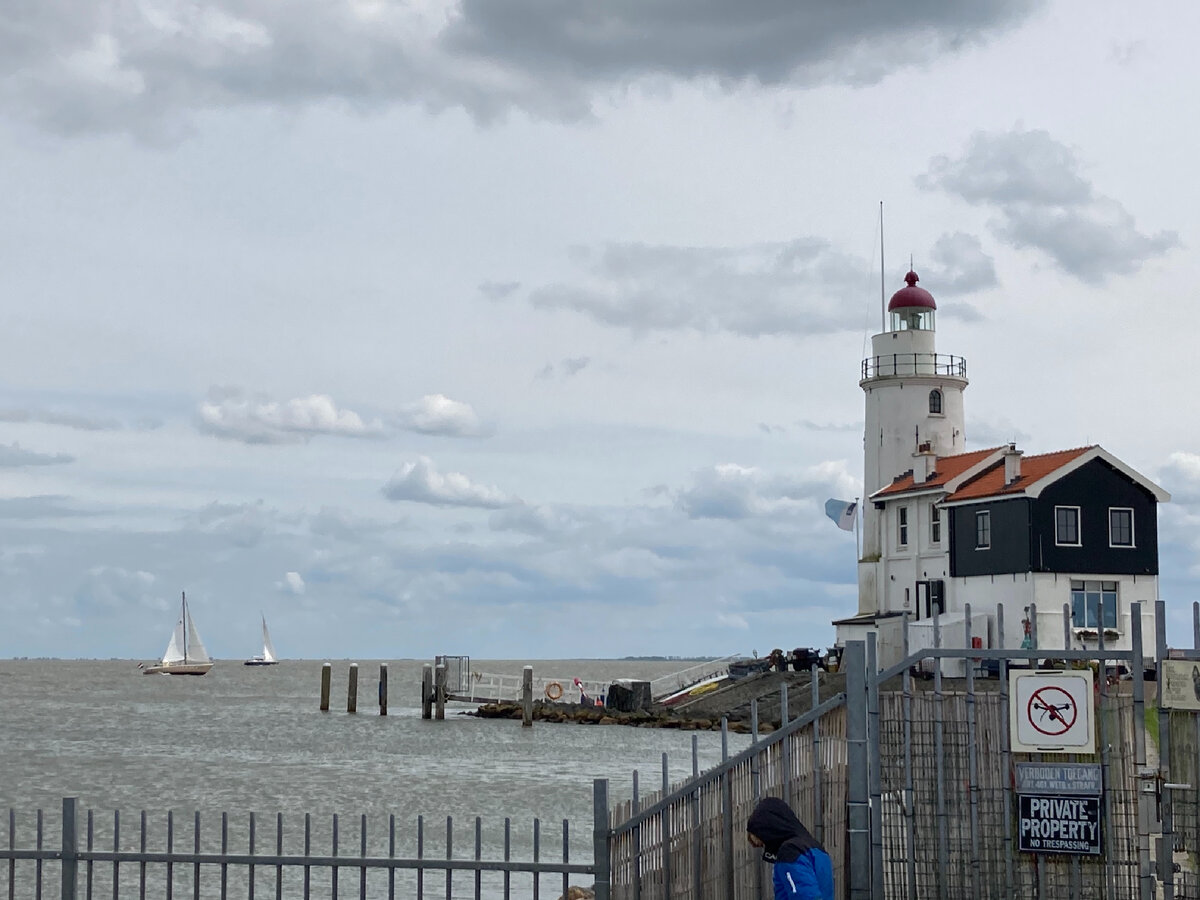 В Голландии довольно много островов. И народ любит ездить/плавать туда отдыхать. Можно там гулять, ездить на велосипеде вокруг острова, плавать, ловить креветок, ну или просто сидеть в кафе и смотреть на море. Даже в прохладную погоду люди туда едут. Острова разные по размеру. На одних есть гостиницы, парки отдыха, музеи. Другие слишком малы для такого. Мы решили отправится на один из таких маленьких островов. Остров Маркен. Очень симпатичное место. Есть маяк. Ферма с овечками и лошадками. Много красивых домиков и кафешек. Добраться можно на пароме из Волендама или доехать по дамбе. В целом все очень мило, за исключением погоды. Всё-таки в конце мая хочется уже снять зимнюю куртку...