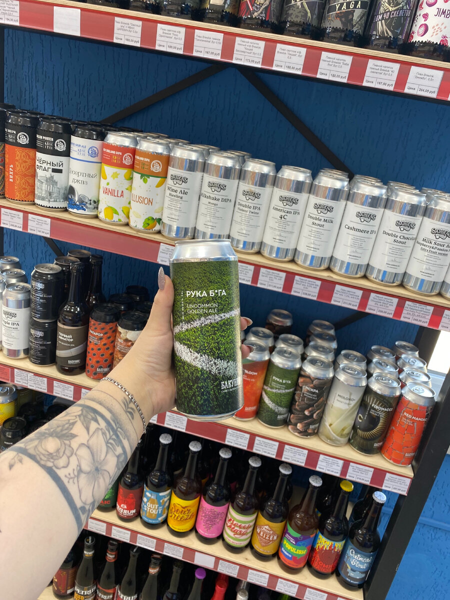 К разбору сегодня представлен напиток "РУКА Б*ГА", это светлое фильтрованное пиво, мягкое- для начинающий ценителей крафта. Его алкогольный оборот ровняется стандарту 4,5% что очень приятно. Его вкус- мягкий, приятный. Не специфический, не имеет привкусов. Хмель в составе не обжаренный, за счёт этого пиво в действительности очень светлого оттенка. Если вести рассуждения, то я не могу выставить его на 1-3 места пьедестала по вкусу, почему? Наверное потому что лично я не испытала дикого восторга от данного напитка. Ведь хотелось что-то интересного и не обычного. Если бы за моими плечами не было столько выпитых крафтовых напитков, я бы вероятнее всего размышляла немного иначе. Но ведь есть вкуснее, есть то чем можно удивить свои вкусовые рецепторы! Если вы планируете удивить красивой и эффектной банкой, но испытать стандартный всеми любимый вкус пива- да, это Ваш вариант. Или вы в первый раз пробуете крафт- да. Но если вы всё-таки хотите точно понять, стоит ли дальше увлекаться данн
