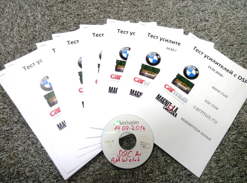 В этом автомобиле предлагалось сравнить четыре озвученных выше процессорных усилителя. Причем, прослушивание объявлялось открытым, и на него приглашались все желающие. После предварительных прикидок, мы поняли, что для получения хоть сколько нибудь систематизированных результатов, потребуется единый материал и единая методика для оценки. Когда мы подсчитали общее количество записавшихся на прослушивание, пришли в ужас: 12 человек (в основном жители BMWclub.ru) должны были прослушать 4 процессорных усилителя, причём, каждый из них должен был прослушивать их один за одним, чтобы добиться максимальной объективности. По итогу прикинули, что тестовый материал должен укладываться хотя бы в 8 минут, иначе просто не успеем. За основу я взял подборку авторства Андрея Пивня (tubeHD) и сократил до 4 треков, каждый из которых урезал до 2 самых показательных минут (жалко, конечно, но что делать?:() К этой подборке я подготовил описание и протоколы, и вывесил все в открытый доступ cloud.mail.ru/public/EEpA/NvA6R2Wfx