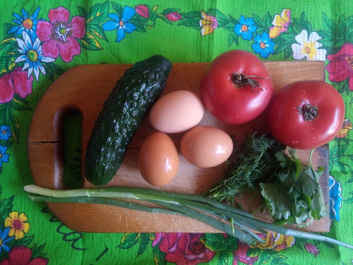 Простой, лёгкий и питательный, летний салат на каждый день. 3. Через 8-10 мин. достаем яйца, чистим и нарезаем. 4. Все смешиваем, добавляем соль, перец и масло кому какое нравится, я использую горчичное. Салат готов, приятного аппетита🙃