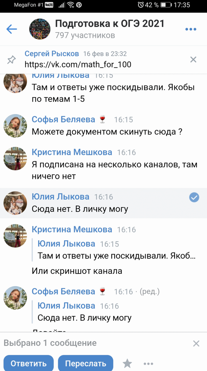 Про ЕГЭ я ничего не напишу, а вот про ОГЭ можно уже написать некоторые моменты. 9 класс сдаёт впервые такие экзамены и поэтому они ещё неопытные. Русский язык прошёл впервые абсолютно и действительно честно. Ура. Но после экзамена некоторые дети решили узнать как там со сливом ответов и оказалось что уже в 5 утра были варианты которые дети решали в понедельник на ОГЭ по русскому. В 5 утра! Сегодня те из детей, кто уверенно слаб и не сможет сдать математику несмотря скорее всего ходили в приподнятом настроении. Они уверены что спишут, а местом действия выберут туалет. Вот можете посмотреть ажиотаж по по поводу грядущих вариантов ОГЭ математики на завтра в одном из сообществ Вконтакте. Дают ссылку только в (листайте 13 скриншотов) : Главное уже с ответами. Вот примерно в таком виде: Это телеграмм- канал @lays2021, я решил туда подписаться тоже и вот получил следующую инструкцию уже на первой странице: Инструкция очень незамысловатая: Сегодня. 0. Распечатать ответы Завтра. 1. Зайти на