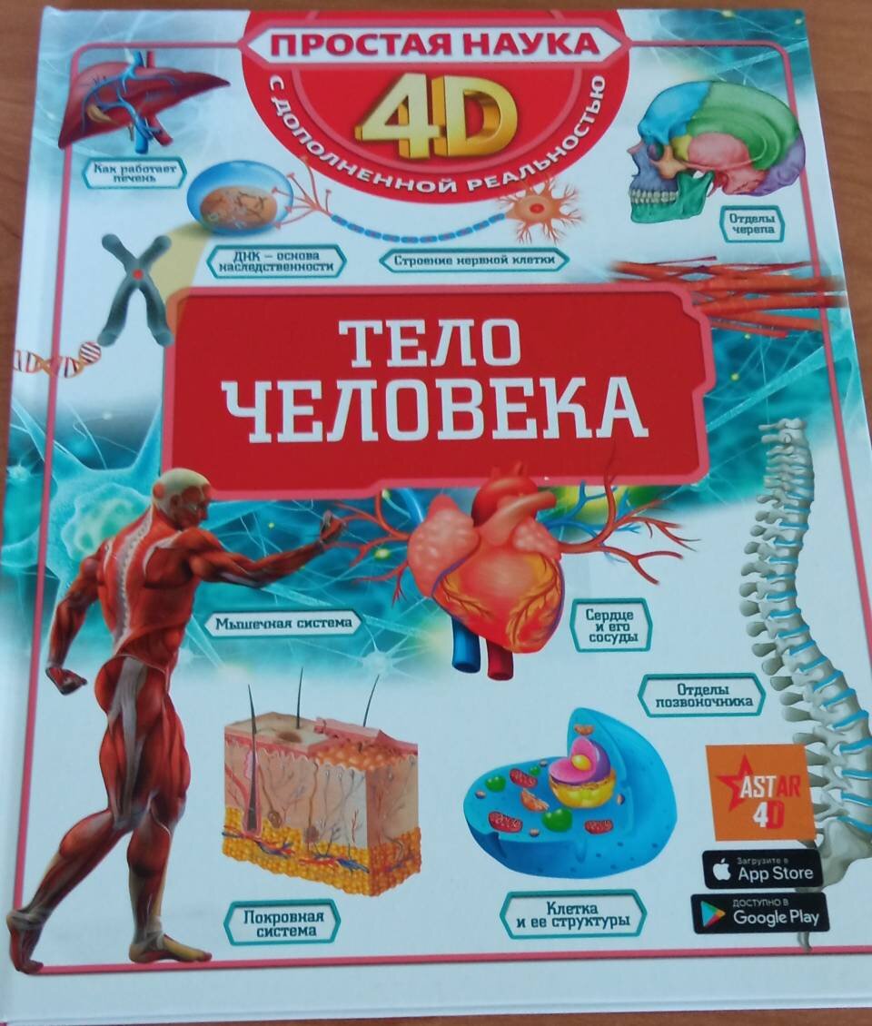 Я из разряда тех матерей, которые любят организовать досуг своих детей. Я с удовольствием провожу время с сыном. О наших занятиях я обязательно напишу отдельную статью, в этой же статье хочу поделиться одной любопытной находкой. Наткнулась я случайно на полке в "светофоре" на книгу: С виду обычная, познавательная книга. Хорошие иллюстрации, новый год издания. Но заинтересовал значок "4 D". Как это работает? С обратной стороны книги даны подробные инструкции: Приложение бесплатное: После того, как установлено приложение, соответственно открываем его. В меню предлагается выбрать нужную книгу для дальнейшей работы. Книг действительно очень много. Я взяла только две из этой серии. Пролистала вниз, нашла нашу энциклопедию, открыла страничку книги со значком "4D" и вот какое интересные объёмные изображения получила: На нижней панели набор инструментов: фото, видео, звук. Если нажать на жёлтый кружок и звук, то последует краткий рассказ об интересующей части тела. Очень интересное пос