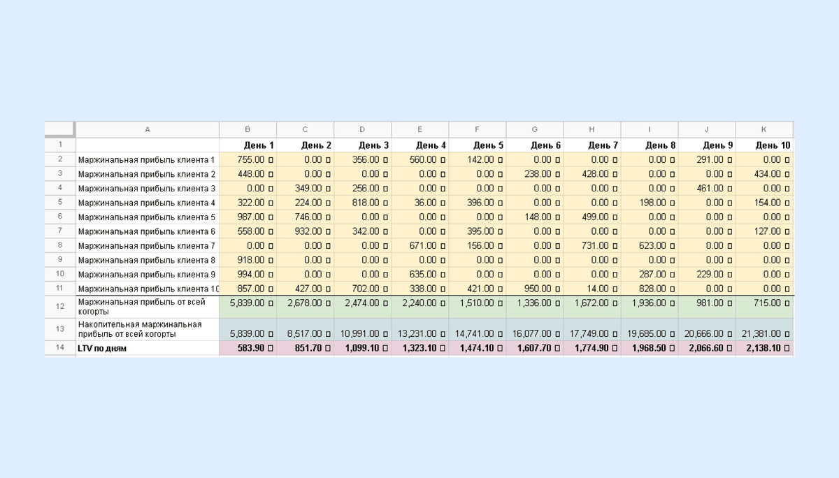 LTV (Life-time value) или CLTV (Customer Life-time value) — прибыль, которую мы получаем за всё время пользования клиентом нашими услугами. Например, посетитель кофейни приходит 3 года и оставляет там 1000 рублей в неделю, это 150 000 рублей за всё время. А потом он переехал жить в другой город. Если из 150 000 вычесть расходы, то получим LTV этого клиента. LTV — это не какая-то новомодная маркетинговая ерунда, про которую скоро все забудут. Термин появился ещё в 1988 году в книге Роберта Шэу и Мерлина Стоуна «Database Marketing» LTV нужно всегда рассматривать в паре с CAC. CAC — это customer acquisition cost, то есть стоимость привлечения клиента. Обычно рассчитывается так: сумму всех затрат на маркетинг и продажи необходимо разделить на количество новых пользователей. Другими словами, LTV — сколько мы заработаем на клиенте за всё время работы с ним, а CAC — сколько на него потратим. Почему LTV важен в маркетинге и рекламе Если вы не знаете свой LTV, то действуете наугад. Вы можете по