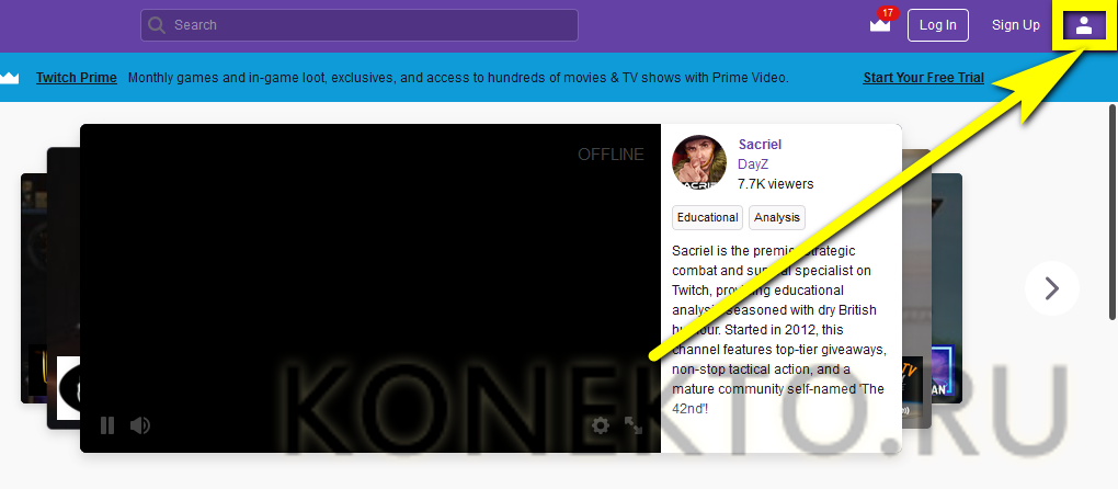- И убедиться, что во встроенном плеере на сайте Twitch.tv появилась надпись «Не в сети».