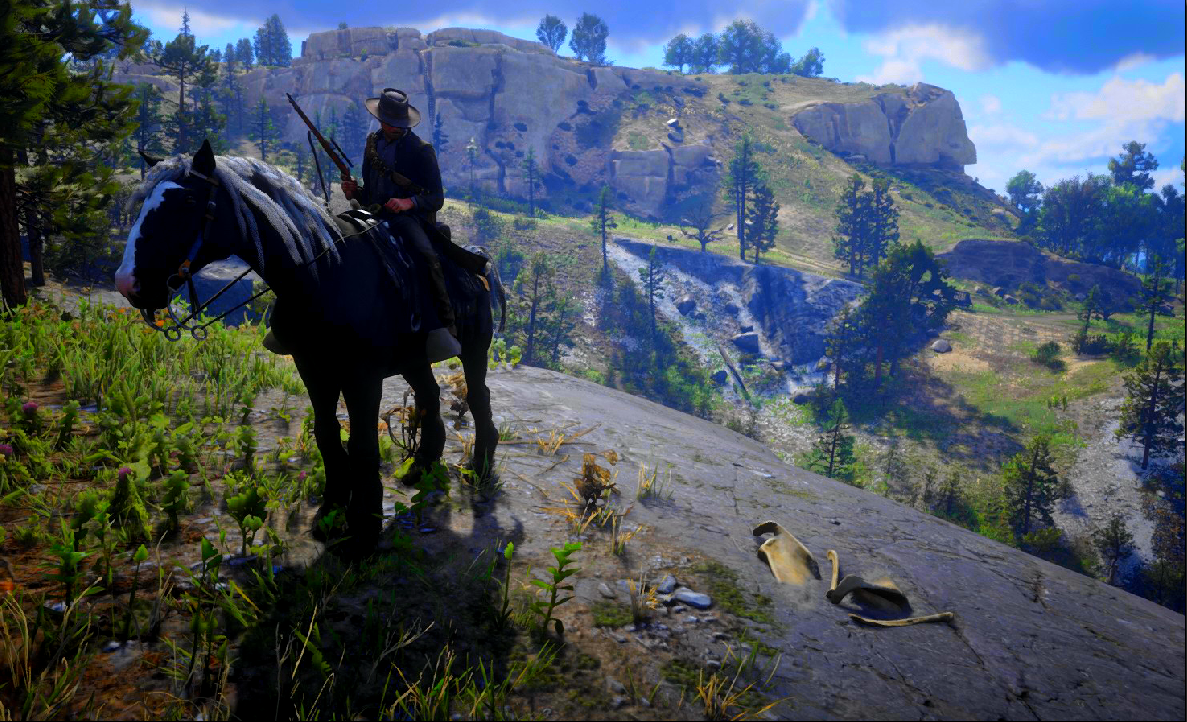 Это вам не поезда и банки грабить... Кому как, но лично меня сбор коллекционных предметов в играх всегда выводил из себя. Пристаёт к тебе такой зануда – НПС, которому вынь да положь строго определённое количество предметов, да ещё и не абы каких, а дико дефицитных или трудно добываемых на твой уровень прокачки в этот момент. Но мало что может сравниться с поиском костей динозавра в Red Dead Redemption 2. Начинается всё с того, что Артура случайно привлекает возня в неглубокой яме при свете фонарей. Подъехав ближе, он видит, как какая-то упёртая тётка пытается «в одного» вытащить из ямы огромную тазобедренную кость динозавра. Как истинный джентльмен, Артур помогает женщине погрузить останки давно усопшего ящера в повозку. И надо было бы сразу рвануть от неё подальше, по своим бандитским делам… Но нет! Палеонтолог Дебора МакГиннес сразу же «припахивает» подвернувшегося под руку героя: - Она – де открыла новый вид динозавра и собирается утереть нос всему научному обществу Штатов. А д