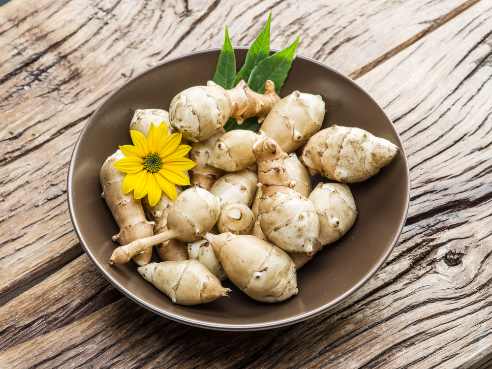 Хороши эти клубни и для тех, кто хочет похудеть. Топинамбур нормализует жировой обмен и способствует снижению веса. Да и калорийность земляной груши невелика – всего 58 ккал на 100 г.