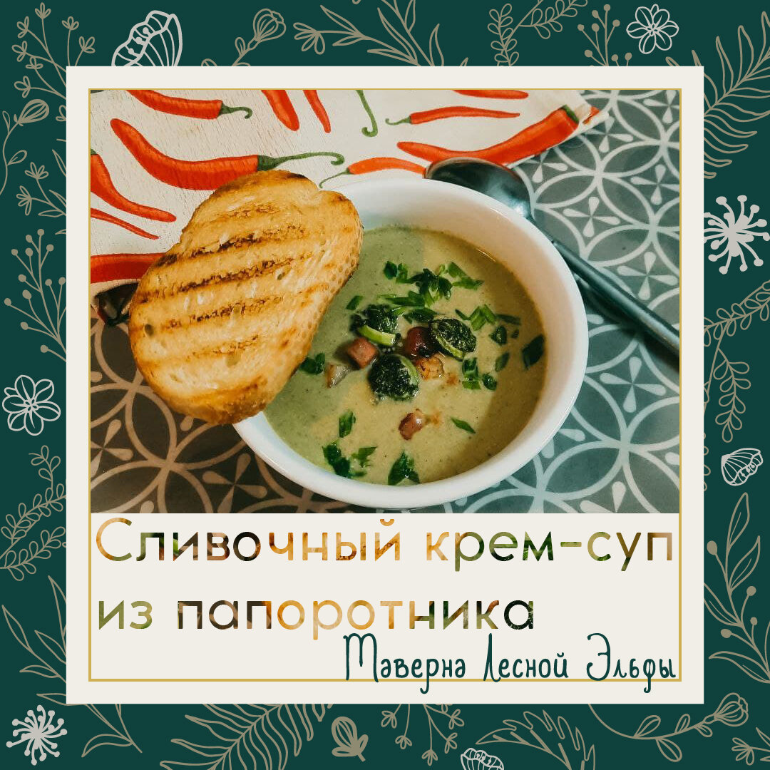 Обещаю, в этом году последний рецепт из папоротника. Пока сезон, решила максимально получить витамины и полезность от продукта и отработать рецепты. Пряный, сытный, с легкой остринкой сливочный крем-суп из папоротника с грудинкой. Итак. Нам понадобится: Для начала подготовим ингредиенты, отложим немного спиралек папоротника для украшения, начистим и нарежем картофель, чеснок и лук. Форма нарезки не важна, так как мы будем пюрировать погружным блендером наш суп. На днях я готовила холодец, и у меня осталось несколько корешков пастернака, добавила и его в суп, чего добру пропадать. Обжариваем в кастрюле с толстым дном на небольшом количестве масла нарезанный лук, чеснок и пастернак, нам нужно, чтоб они изменили цвет и добавили вкуса в готовом блюде. добавляем картофель и 2 литра воды.