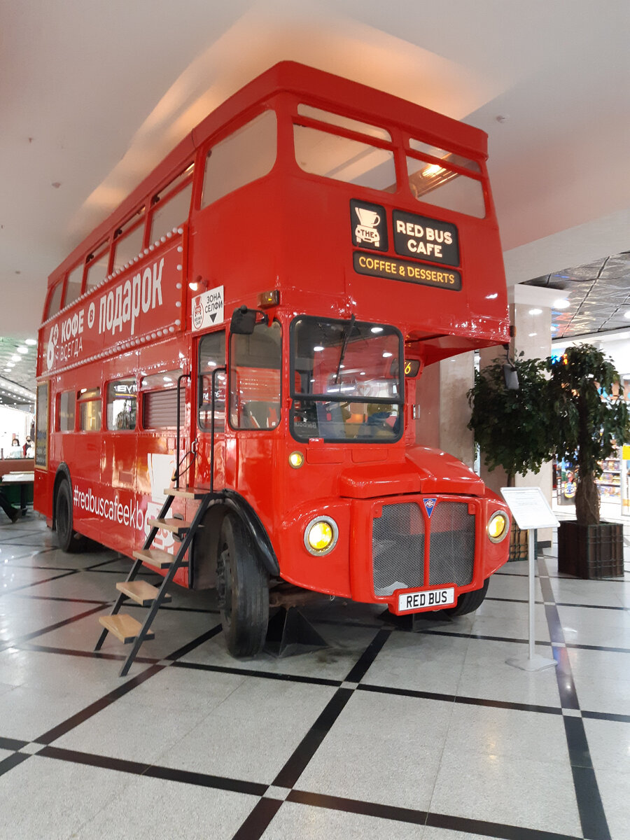 Добрый день! Продолжаю рассказывать о нашей поездке в Екатеринбург. Город превзошел ожидания. Панорамные смотровые площадки с интересными видами на город, много ухоженных набережных, фонтанов, зеленых, тенистых парков и скверов. Оказалось, что два дня не так уж и много для этого города. Отужинав в итальянском ресторане в Дендропарке, заглянули не надолго в торговый центр по-соседству. 1. ТК "Гринвич" Первое на что обратили внимание - это классический британский двухэтажный автобус, который превратили в Red Bus Cafe. Самое интересное, что этот дабл-дэкер действительно прибыл в Екатеринбург из Британии. Был куплен на аукционе. На первом этаже разместились бар и мини-кухня, а посидеть с чашечкой кофе и десертом можно на втором этаже. Гуляя по торговому центру встретили огромный фонтан-глобус, на котором указаны места обитания разных зверей и гигантские песочные часы. В "Гринвиче" много различных скульптур. Мы повстречали дореволюционного отца семейства с кучей покупок и дочкой на плеч