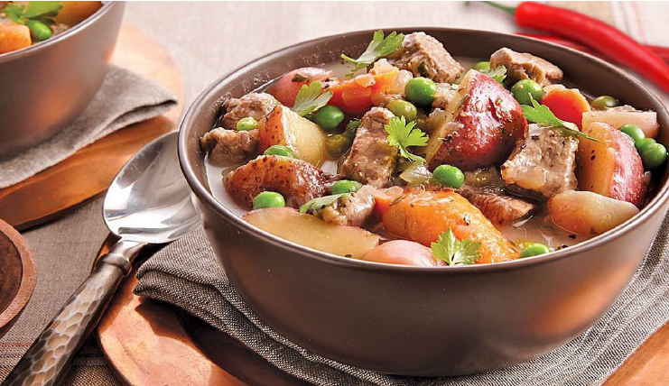 Вкуснейшее блюдо для тех, кто любит мясо! Тушеное мясо с овощами в казане - простое и достаточно сытное блюдо, которое способно заменить полноценный ужин или семейный обед. Готовится оно довольно легко, а результат обязательно порадует всех любителей мяса и не только. Ингредиенты на 10 порций: Баранина 1.7 кг., растительное масло 100 мл., лук репчатый 1 шт., мука 70 гр., вино белое 170 мл., куриный бульон 1200 мл., картошка 500 гр., морковь 200 гр., тимьян, чабрец 2 стол. л., зелёный горошек 500 гр., петрушка 4 стол. л, соль по вкусу, перец чёрный молотый по вкусу Способ приготовления: ШАГ 1: Баранину для этого блюда лучше всего выбрать молодую, чтобы не было специфического запаха, и чтобы сократить время приготовления самого блюда. Мясо сначала следует хорошенько промыть в холодной воде, а затем обсушить, протерев насухо бумажным полотенцем или плотными салфетками. ШАГ 2: Далее мясо необходимо разрезать на порционные кусочки небольшого размера, чтобы оно быстрее приготовилось. ШАГ 3: