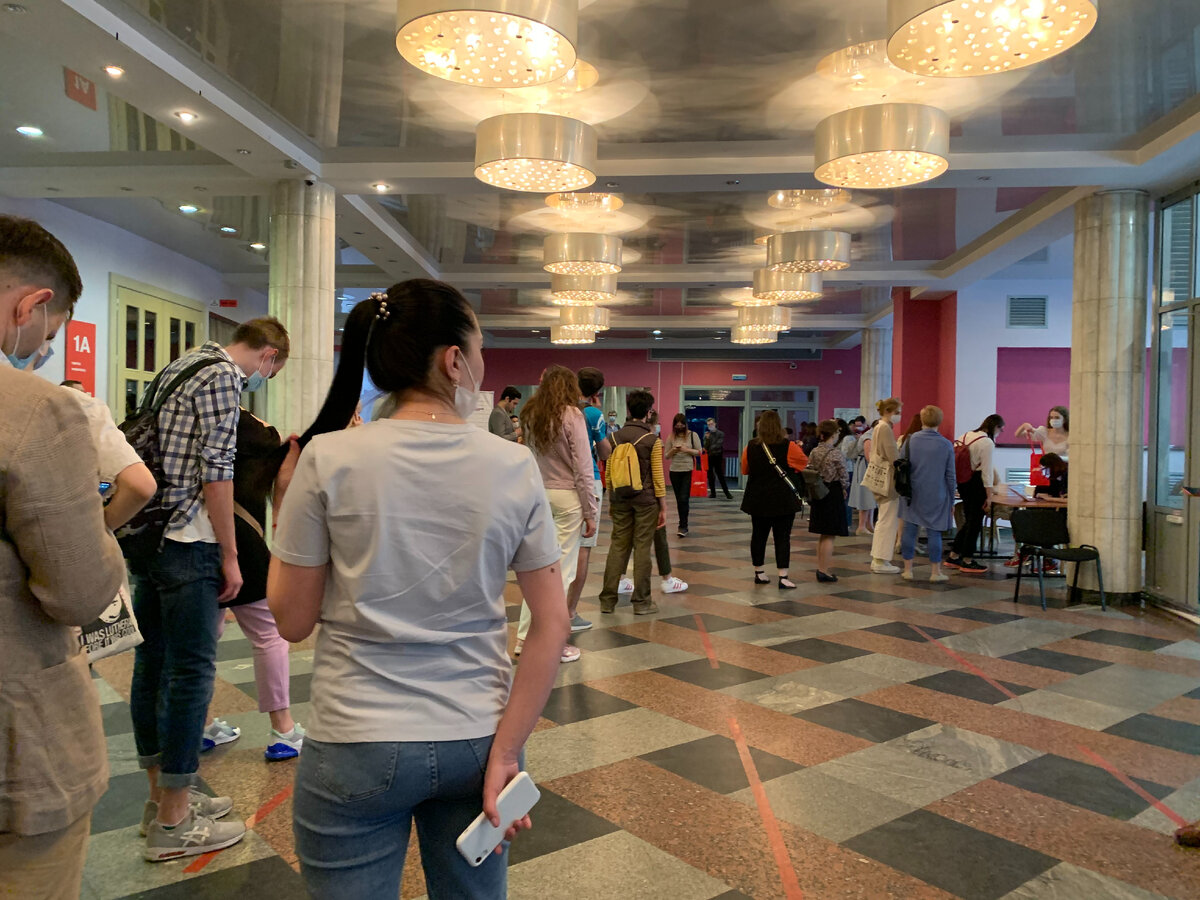 Наконец у нас состоялось награждение отличников Тотального диктанта (тех, кто получил высший балл на очном мероприятии в этом году). Вначале вручали подарки. Это очередь за ними: Вот такой наборчик достался мне за "пятерку по английскому". Здесь же сертификат отличника. В зале на боковых экранах огромными буквами проецировалась просьба надеть маски (да, народу было достаточно много, а некоторых даже вызывали на сцену для вручения дополнительных призов). Показали небольшой ролик о том, как писали диктант в этом году. На экране в аудитории вы можете видеть автора, Дмитрия Глуховского (кстати, английский отрывок также был из его произведения, переведенного с русского). После этого актеры (один был диктатором - читал текст на одной из площадок, а другая принимала участие в съемках фильма, снятого по тексту Глуховского) заново прочитали нам "Обещание" целиком, поскольку все пять частей вряд ли кто-то писал - они распределялись по часовым поясам, а также на онлайн-площадки и офлайн диктант.