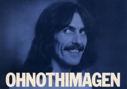 Что это за странное слово и зачем оно здесь? Джордж Харрисон выпустил альбом «Dark Horse» в 1974 году. Пластинка вызвала негативные отклики, турне было организовано в спешке. Кроме того, Харрисон не успел оправиться от тяжёлого ларингита и был далеко не в голосе. Пластинка и гастроли были раскритикованы, альбом даже прозвали «Dark Hoarse» («Тёмный хрип») из-за звучания вокала Харрисона. Когда в 1975 году пришло время выпустить следующий альбом «Extra Texture (Read All About It)», Джордж решил подшутить на тему своей падающей популярности. В оформлении альбома было две любопытных детали. Логотип Apple был изменён. Вместо спелого, наливного яблочка покупатели пластинки увидели грустный огрызок. Что как бы намекало на состояние дел битловского лейбла. Кроме того, на внутреннем развороте конверта была помещена синяя фотография ухмыляющегося Джорджа с бросающейся в глаза надписью «OHNOTHIMAGEN». Слово расшифровывается так: «Oh not him again». «Ой, только не он снова». Так самокритичный музы