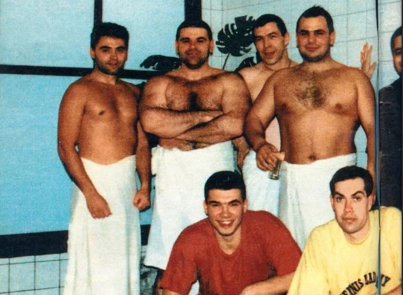В 1990-м, или даже в 91-м году в город пытались зайти чеченцы. «Стрелку забили» во дворе гостиницы «Исеть». С каждой стороны было человек по сорок. Драка началась почти сразу. Чеченцы были сильно биты. Миша Кучин сломал в драке руку и потом при встрече с операми, махая гипсом, укорял: «Мы за вас, бездельников, работу сделали, у меня производственная травма». Типа компенсируйте. Веселый был парень. — из воспоминаний оперативника шестого отдела. Фото, опубликованное в немецком журнале. «Центровыми» из Екатеринбурга пугали Европу. Михаил Кучин (убит в 1994 году) стоит второй слева.