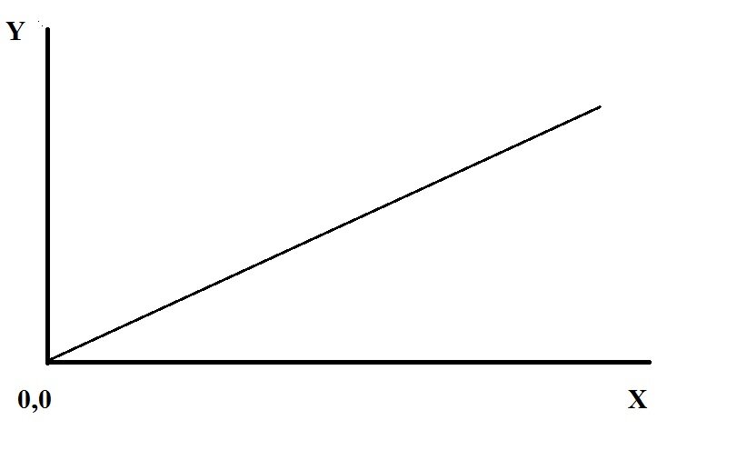 Представим, что нам надо нарисовать этот график в тетрадке в клетку. Здесь все просто, начало системы координат находится в нижнем левом углу, точка с наибольшими координатами в правом верхнем. При построении, графика функции Y = N*X, многократно увеличивая значение Х на 1, мы можем по вычисленным координатам построить прямую линию, которая будет чертиться слева направо и снизу вверх.