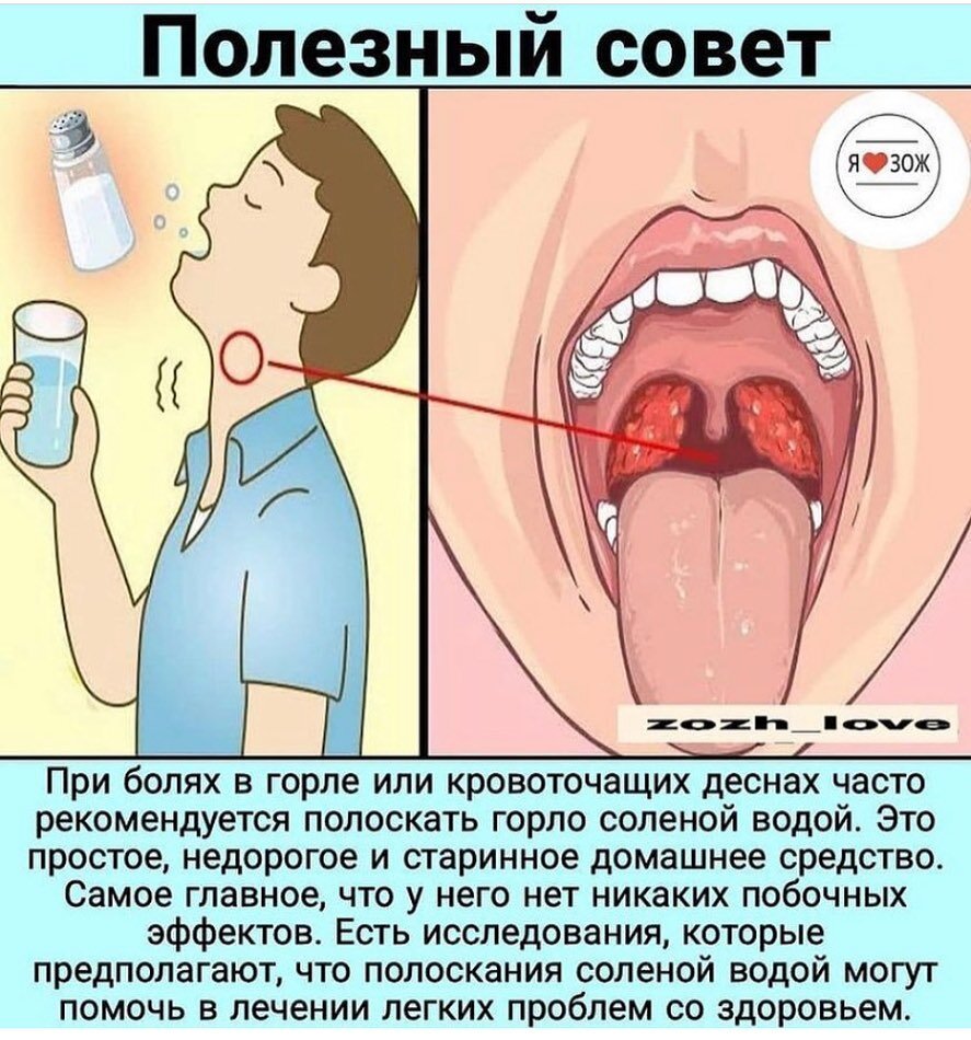 ✅ Итак, вот некоторые удивительные преимущества ежедневного полоскания соленой водой. ⚡Поддерживает уровень рН Соленая вода помогает нейтрализовать кислоты в горле, которые вырабатываются бактериями, что поддерживает здоровый баланс pH и предотвращает рост нежелательных бактерий во рту. ⚡Очищает заложенность носа Полоскание горла соленой водой также помогает удалить слизь в дыхательных путях и полости носа. Смесь уменьшает воспаление и снимает боль в горле. Кроме того, она вымывает бактерии и вирусы, которые могут привести к воспалению. ⚡Инфекции дыхательных путей Согласно исследованию, проведенному в Японии, полоскание горла теплой соленой водой три раза в день может помочь снизить риск развития инфекции верхних дыхательных путей на 40 процентов. ⚡Дает облегчение от ангины Миндалины, расположенные в задней части горла, воспаляются из-за бактерий и вирусной инфекции. Воспаленный тонзиллит может вызвать боль при глотании пищи. Полоскание горла соленой водой может помочь изб